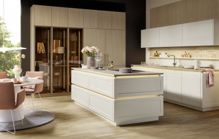 Кухня RAVENNA LACK | LEAF от бренда Nolte представляет собой современный интерьер в эстетике неоклассики. Ее отличает продуманная до мелочей эргономика и удобные внутренние системы хранения. Произведенная в Германии, модель сочетает в себе неизменное немецкое качество и актуальный дизайн, способный преобразить любое пространство. В Москве кухни Nolte выбирают за их надежность, функциональность и безупречное исполнение.