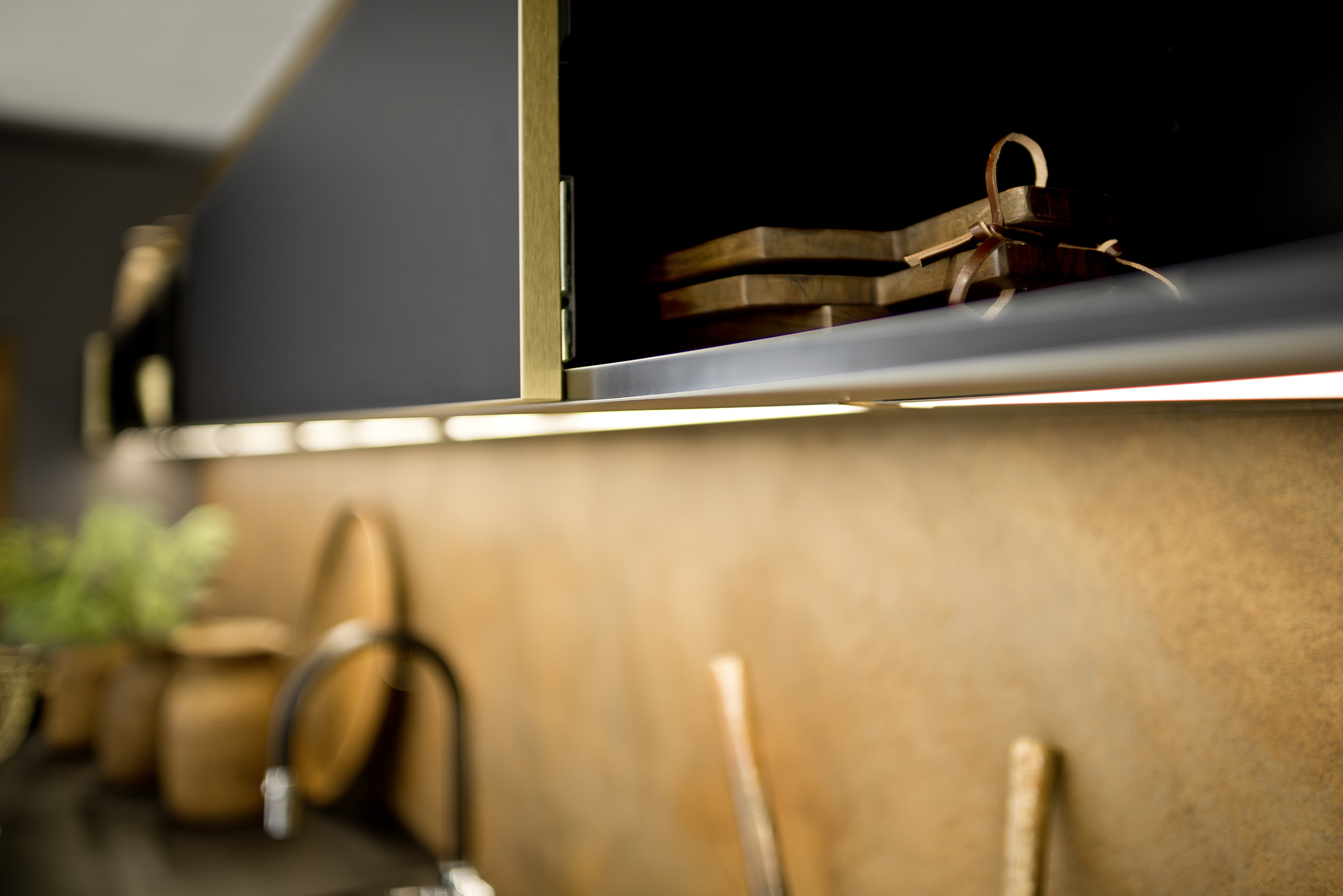 Фасады кухонь серии Flair отличаются изящным сочетанием цветов и фактур. Черные матовые поверхности преобразованы за счет стильной окантовки под металл – латунь и нержавеющую сталь. Контрастный кант подчеркивает чистоту и лаконичность форм. Кухни серии Flair от nolte kuchen гармонично впишутся в современные, индустриальные интерьеры, интерьеры в стиле ар-деко и т.д.